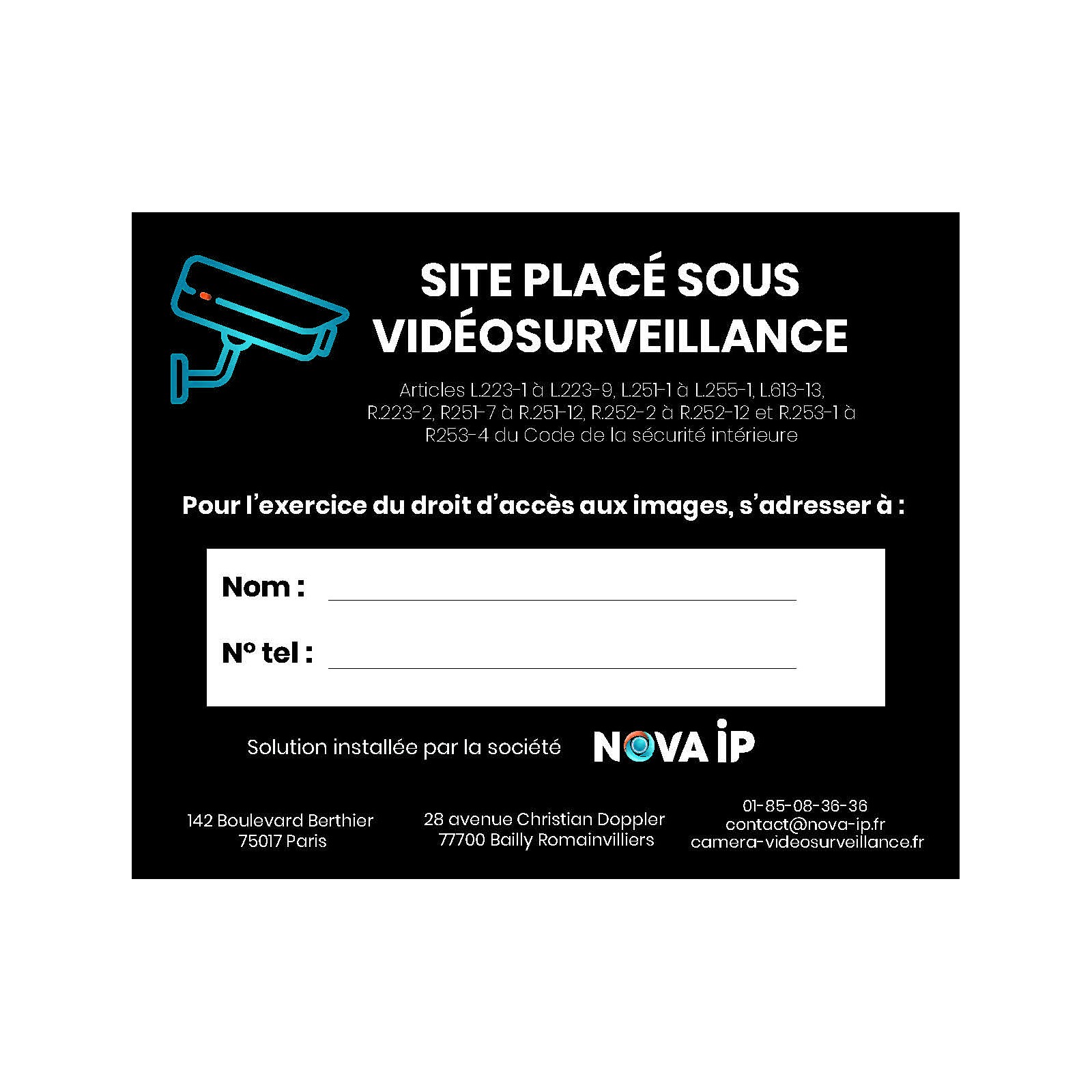 Affiche signalétique de vidéosurveillance autocollante 15cm x 12cm